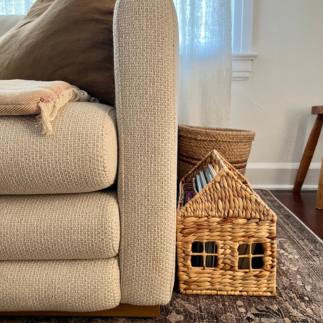 And because it’s one of our most-requested links… you can find that adorable braided house basket pictured above here. It goes out of stock often, so we also linked a few more of our favorite book storage options here.